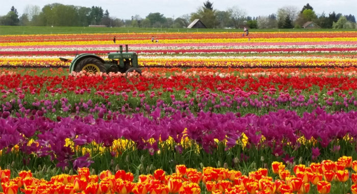 Algunos de los campos más populares incluyen Wooden Shoe Tulip Farm, Schreiner's Iris Gardens y Tulip Fest en Mount Angel.